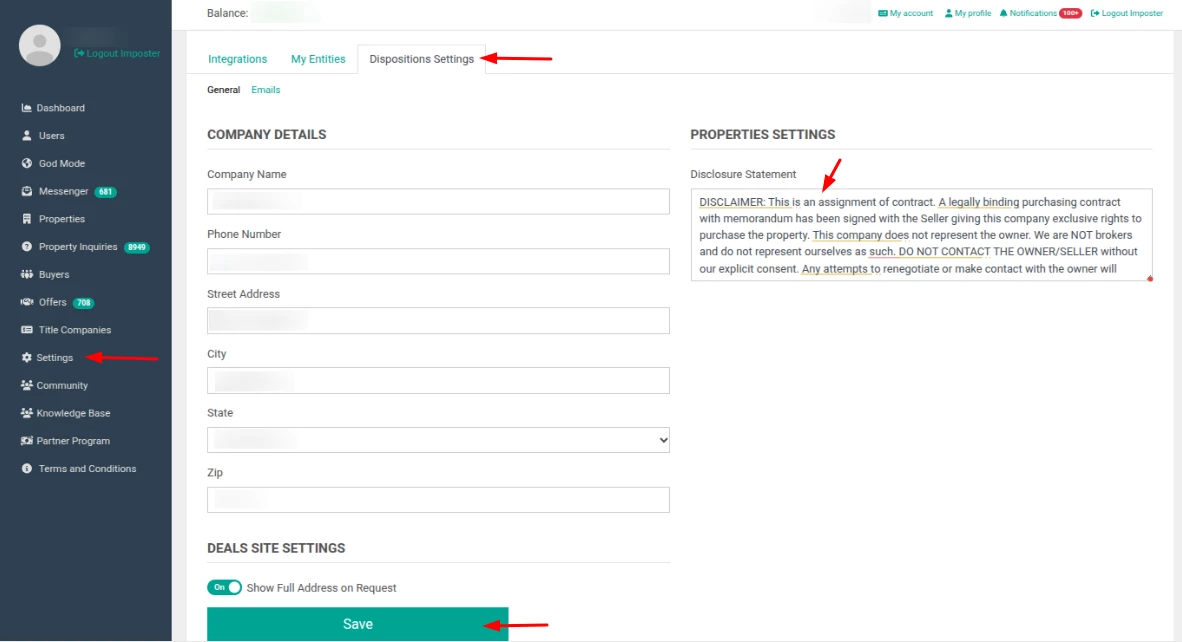 Wholesalers can reinforce expectations by adding a custom Disclosure Statement to the bottom of every listing.
