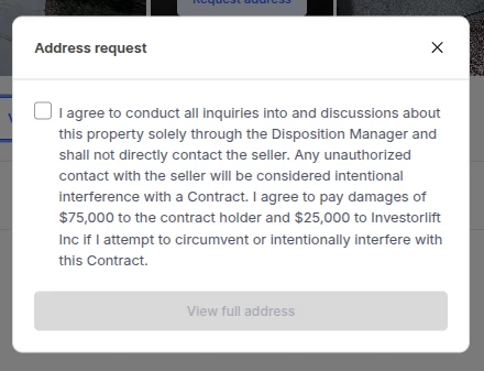 For maximum protection, only share the property address when a buyer submits an official address request. This guarantees the buyer accepts the non-circumvention terms and acknowledges the legal consequences.