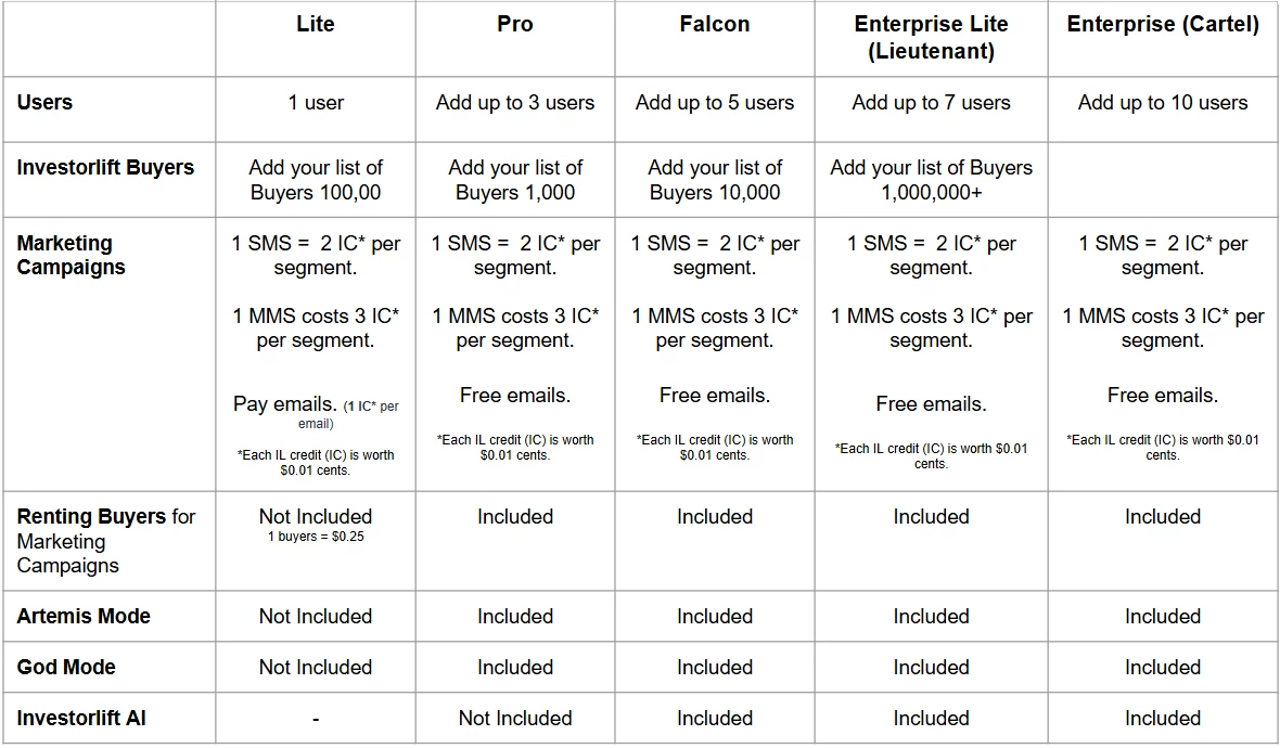 Success in the real estate investment realm hinges on having the right tools. At Investorlift, we offer various licenses tailored to meet the specific needs of investors. From the ability to set up your own seller site to access to an extensive buyer database, our licenses are designed to cater to different operating levels. Let's delve into the distinctive features of each license to help you find the perfect option aligned with your investment goals.