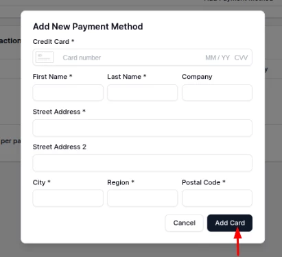 - A pop-up will appear to add the card details: