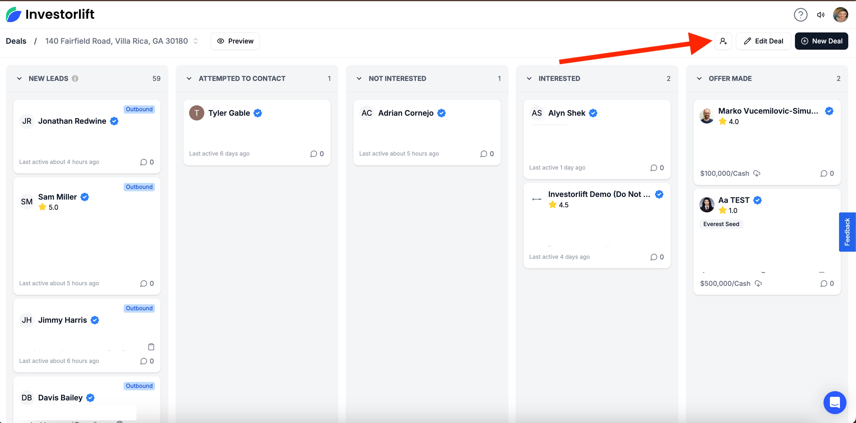 All property address requests and buyers who viewed your deal will appear in your New Leads column - Inbound Leads.