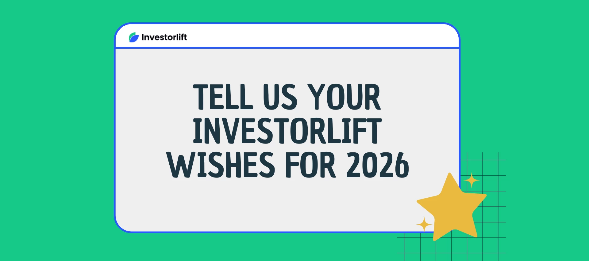 Investorlift grows because of your ideas, your needs, and your vision. So consider this our official end-of-year wish list: tell us what you’d love to see improved, added, or optimized in the platform.
